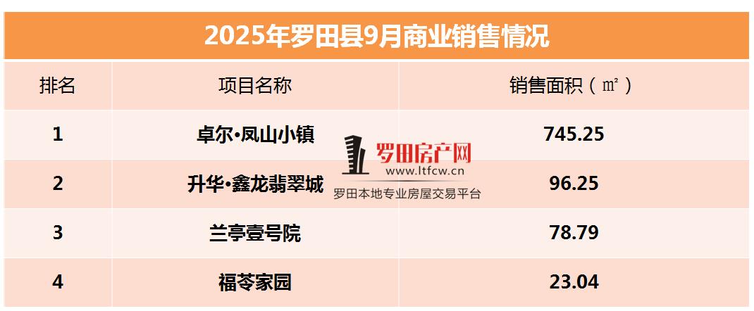 2025年9月商业销量上榜的项目是:卓尔·凤山小镇,兰亭壹号院(城东区),升华·鑫龙翡翠城(城南区),福苓家园(经济开发区);