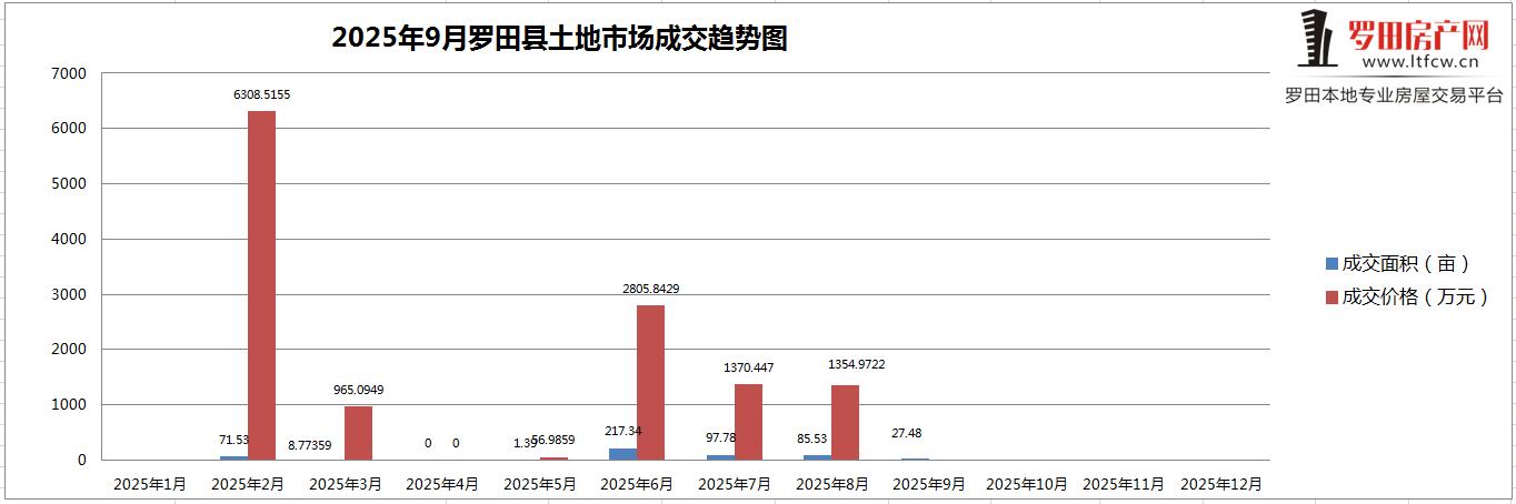 2025年9月份,罗田县土地使用权成交1幅;成交面积:18318.97㎡;土地性质公共交通场站用地划拨;
