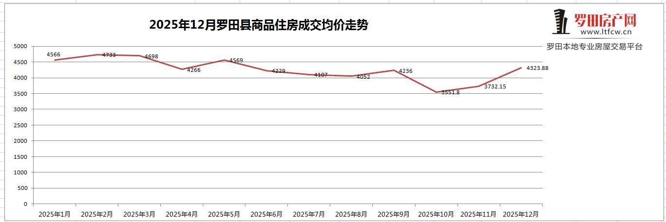 2025年12月份市场成交均价为:4323.88元/㎡,与2025年11月份市场成交均价相比涨幅15.85%;(统计数据不包含别墅,其他类型住宅);