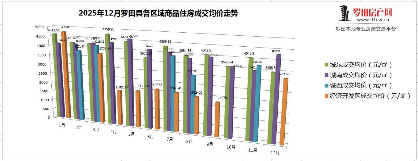 2025年12月份罗田县各区成交均价相比2025年10月份,城东区成交均价下跌14.49%,城南区成交均价涨幅23.78%,城西区12月无成交数据;经济开发区12月成交数据对比9月份数据涨幅82.02%;