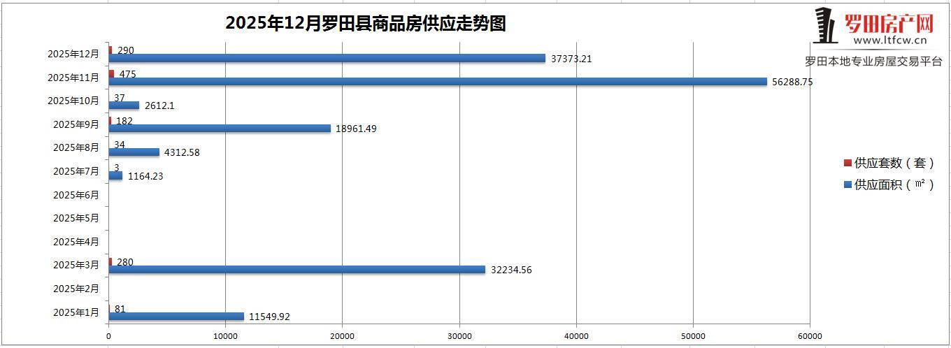 2025年12月份商品房成交面积:12180.92㎡(包括全县住宅、商业),与2025年11月份成交面积相比涨幅了58.42%;