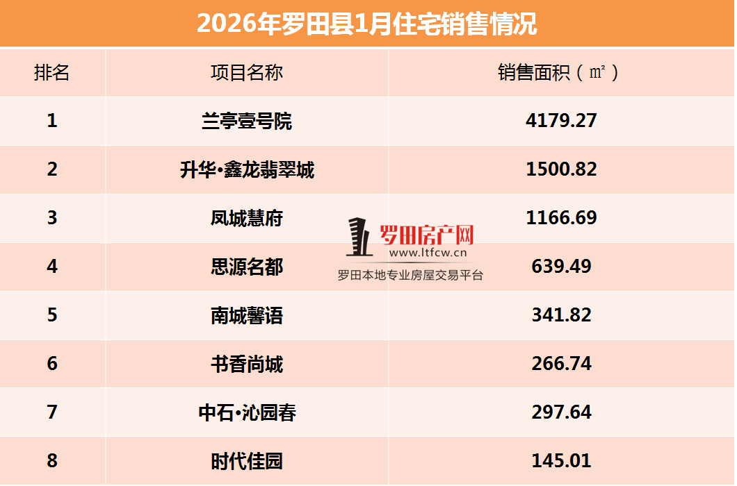 2026年1月份商品房成交面积:14842.05㎡(包括全县住宅、商业),与2025年12月份成交面积相比涨幅了22%;