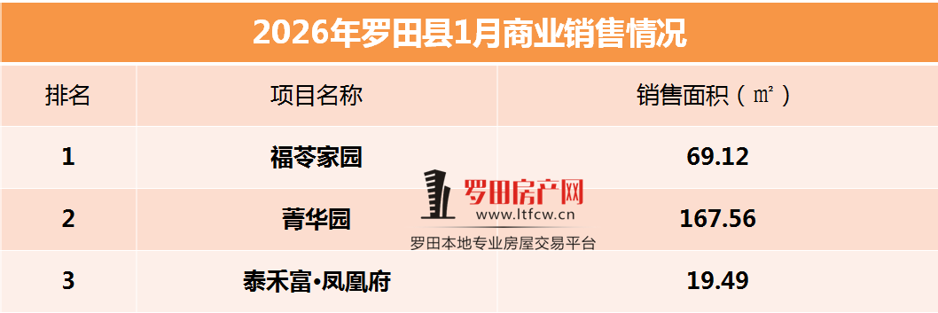 2026年1月商业销量前三的项目是:福苓家园(经济开发区),菁华园(城东区),泰禾富·凤凰府(城东区);