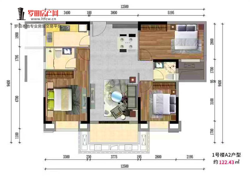 建筑面积:122-134㎡ 温情三房|宽景四房