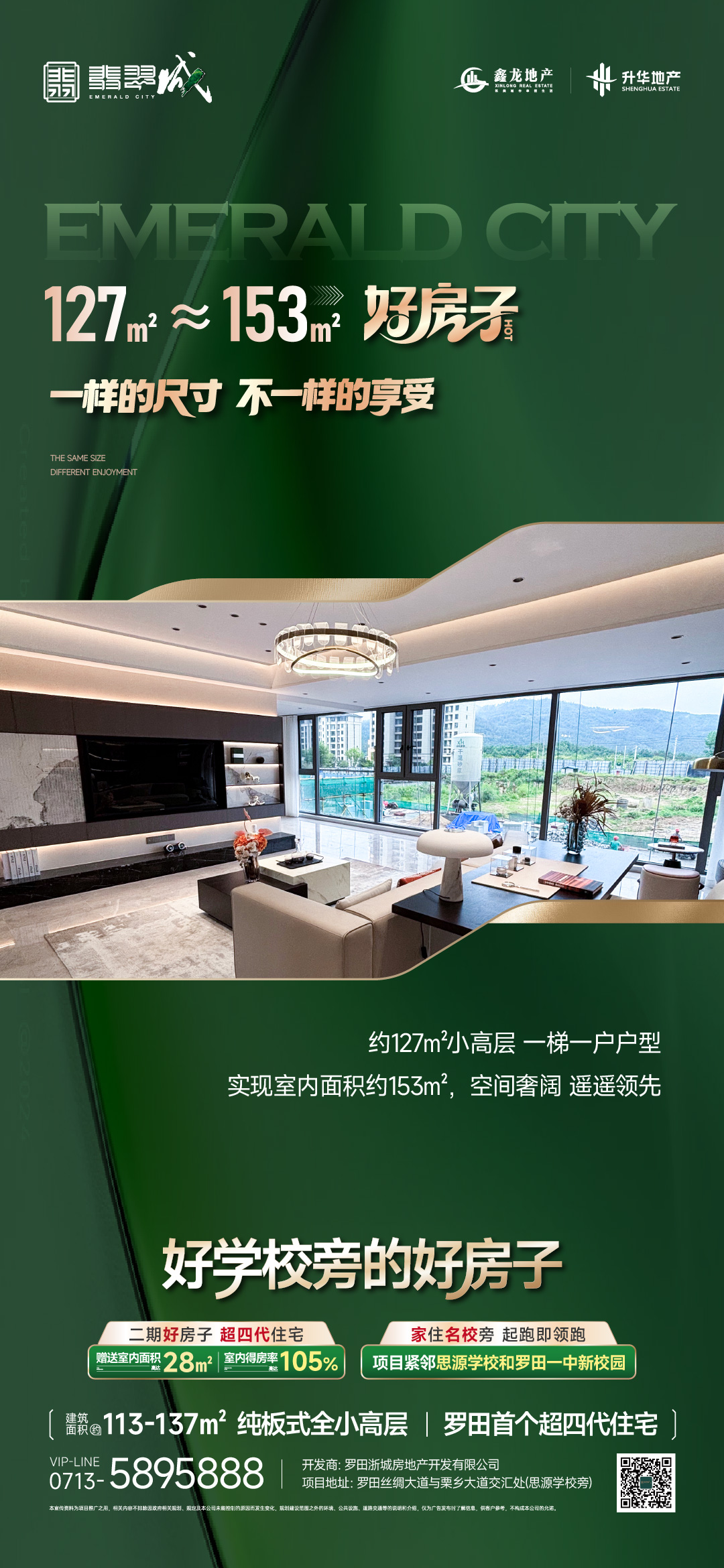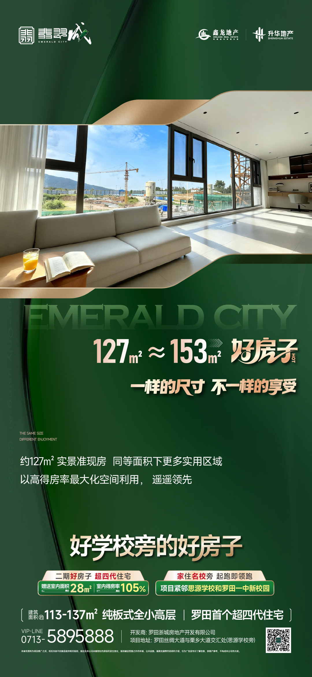 🥇#升华·鑫龙翡翠城 #好学校旁的好房子 👉超四代住宅赠送室内面积达28㎡ 得房率达105%🎓紧邻思源学校、罗田一中新校园💎买127㎡实得约153㎡ 超高性价比