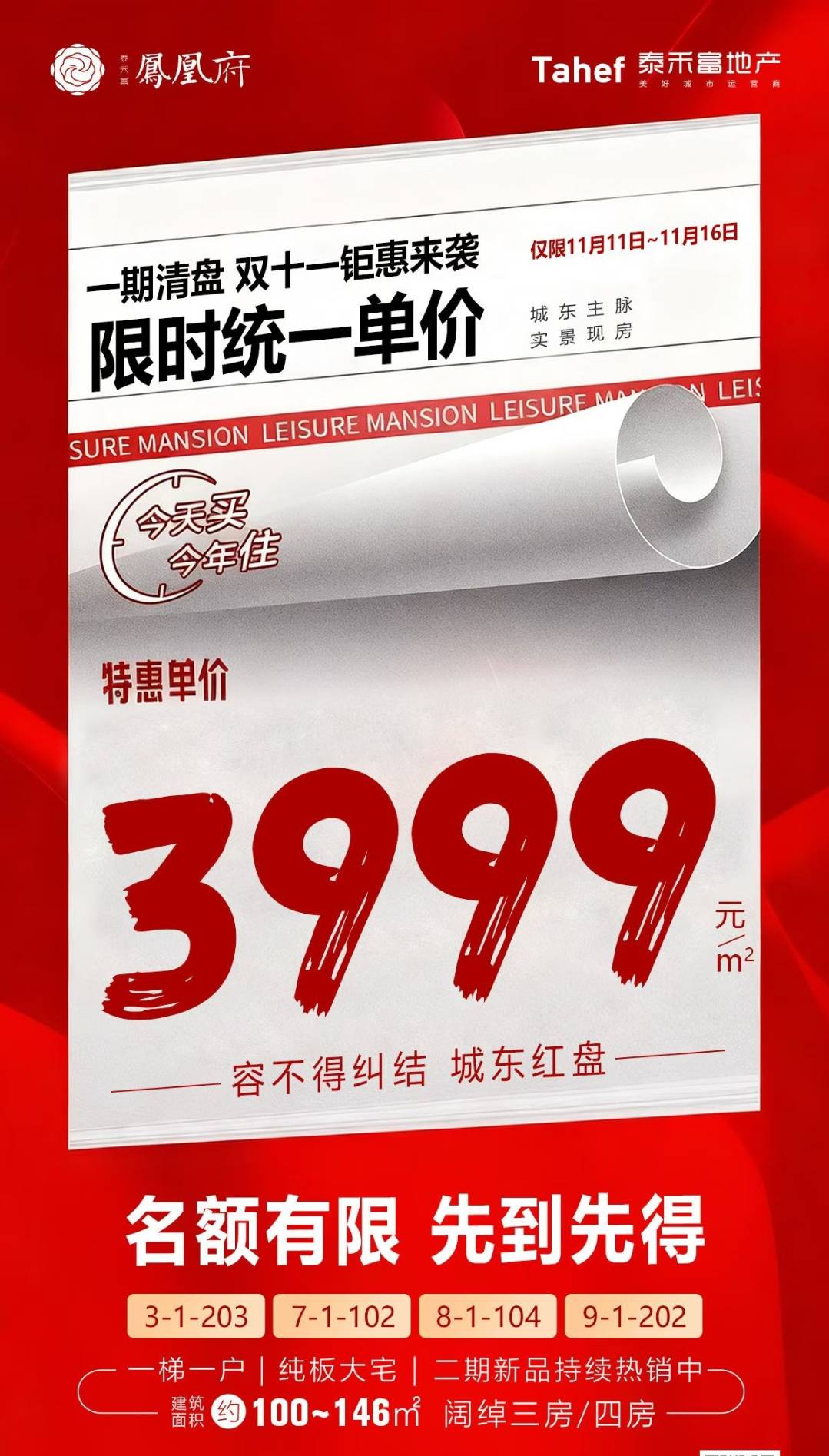 一期清盘统一单价3999元/㎡