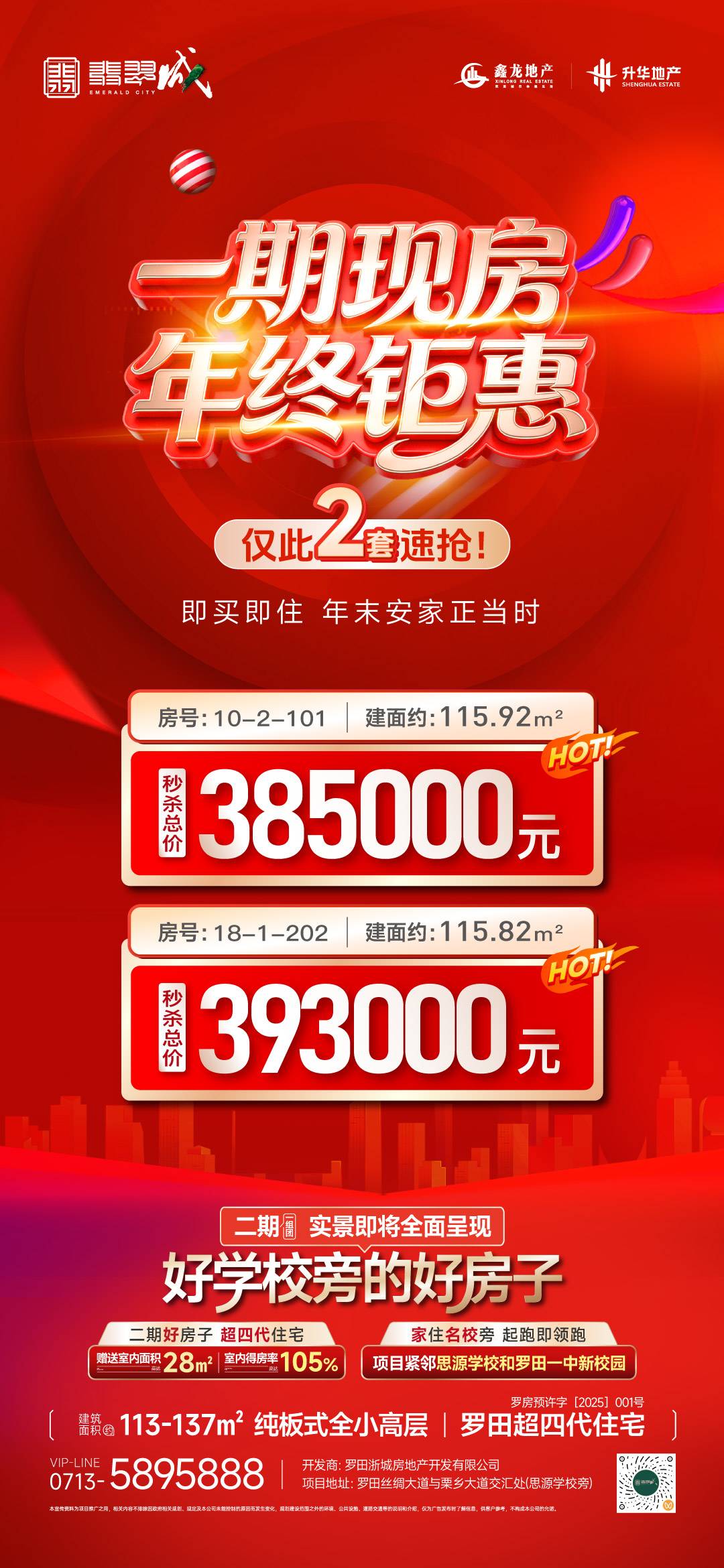 🥇#升华·鑫龙翡翠城 #好学校旁的好房子🔥一期现房年终钜惠‼️仅此2套抄底价 速抢!